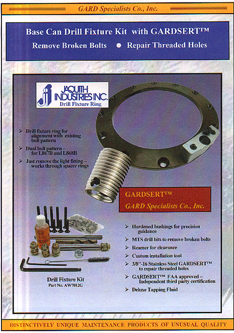stripped bolts on Runway Lighting Base Cans. The kit comes complete with a